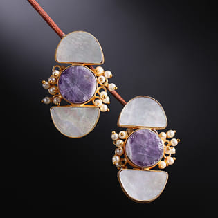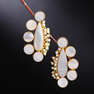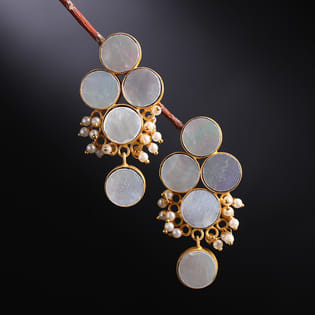 Gold Polished Brass Earrings With Stones N Pearls-Canada